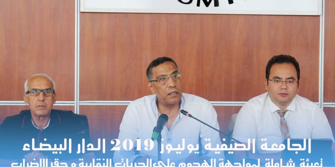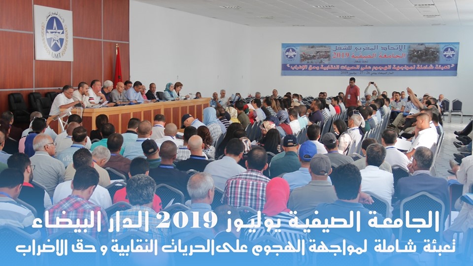 انطلقت، الجمعة 26 يوليوز 2019 بالدار البيضاء، أشغال الجامعة الصيفية، التي ينظمها الاتحاد المغربي للشغل موسم 2019، تحت شعار :“ تعبئة شاملة لمواجهة الهجوم على الحريات النقابية وحق الإضراب “