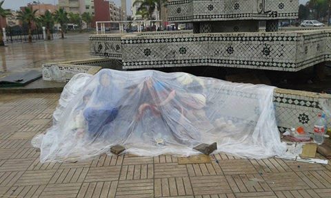 الصورة تم إلتقاطها يوم الإتنين 4 يناير 2016 ….. العائلة تستمر في إعتصامها أمام عمالة برشيد وتطالب حقها في السكن بمشروع المسيرة السكني بمدينة الدروة.
